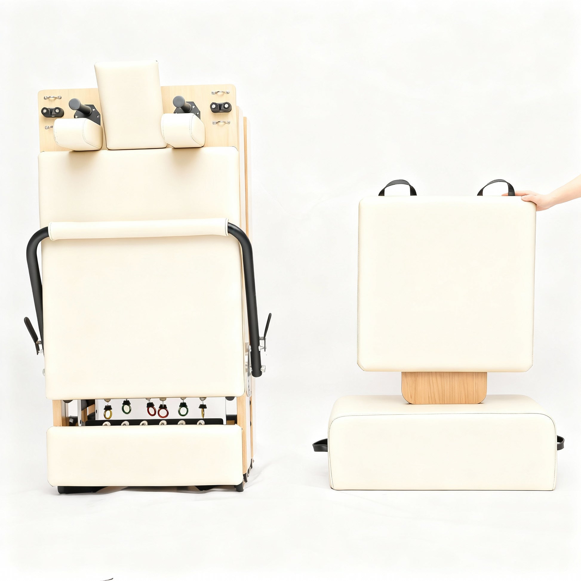 Il modello Flexi è noto per il suo design pratico, in particolare per la sua facilità di piegamento e dispiegamento in due semplici passaggi (facili per chiunque). Questa funzione migliora la comodità e la versatilità del Reformer.